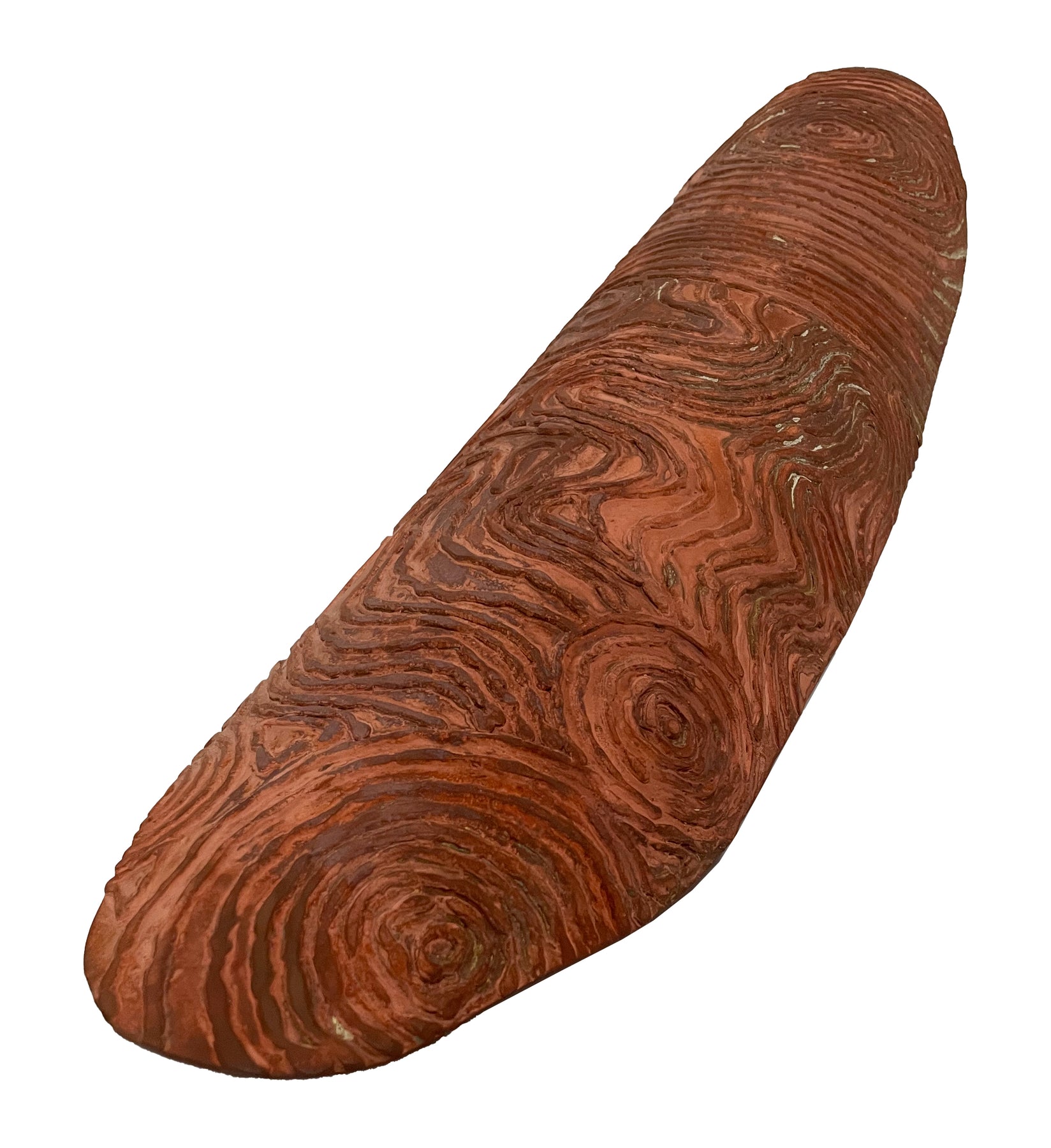 With this sculpture Sarrita wanted to translate her ‘Waterhole” story into a 3D object. The choice to use metal is a reflection on the strength and longevity of the Australian Indigenous culture and the stories passed down over the centuries. The natural tarnish is a reflection of the age of the markings and long history of these stories.